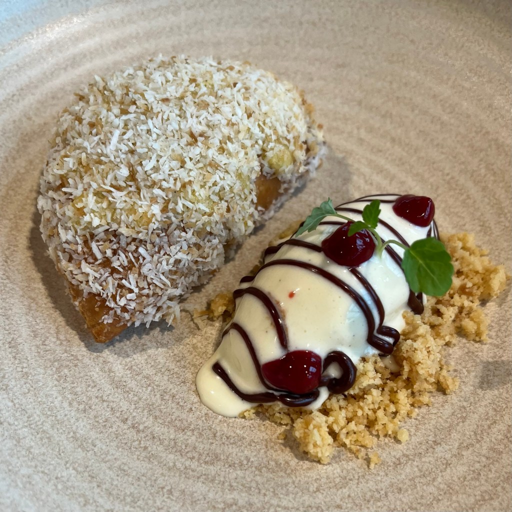 We then finished with DESSERT of an Anguillian classic with spiced coconut, raspberry, vanilla, chocolate caramel that was a delightful way to end a glorious sunday lunch.
