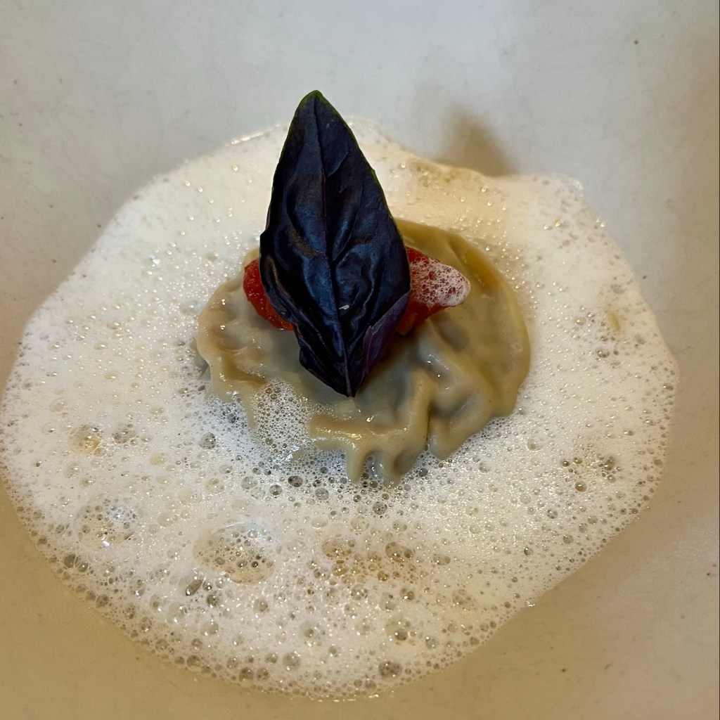 STARTERS – We decided to choose the River Trout Crudo with Blood Orange , Pickled Radish, Chilli and Tomato Essence as well as the Venison Bolognese Ravioli with Tomato Chutney & Parmesan Velouté. These were two amazing dishes in very different ways but absolutely delicious.